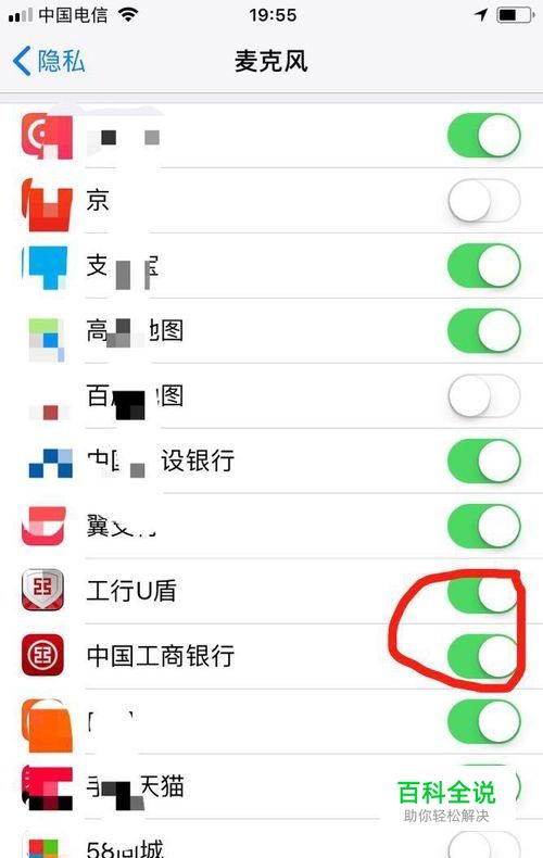 设置->隐私->麦克风,将工行U盾和工行App设为启用状态