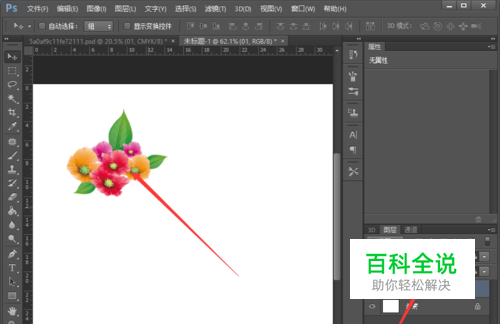 我们用鼠标点击小花的图层挪动到照片图层的上方后,即可看到,小花已经完全显现出来