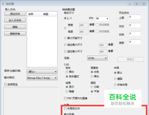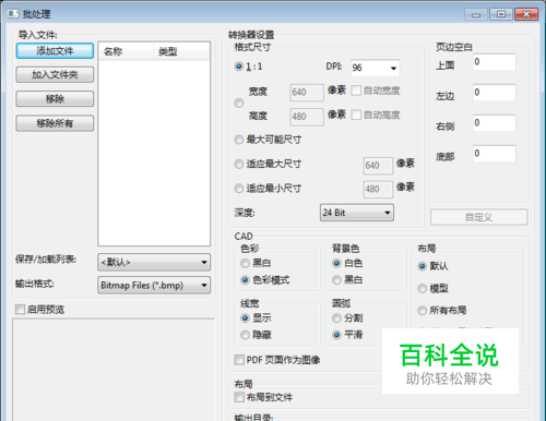 点批处理按钮后会弹出“批处理”对话框,在对话框中先点“添加文件”或“添加文件夹”按钮,将需要转换的文件添加到列表。添加了不需要进行转换的文件,可以在列表中选择后点“移除”;