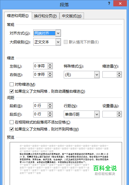 然后,单击鼠标右键,在弹出的菜单中选择“段落”,弹出“段落”对话框。