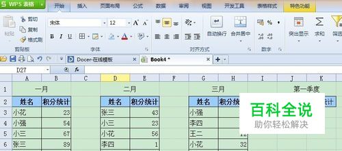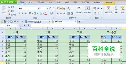 打开原始表格数据,本表中一共有前三个月的会员积分数据,现在需要统计到第一季度下面;
