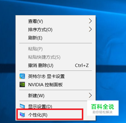 在桌面空白处右击,选择“个性化(R)”选项