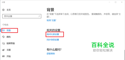 进入到个性化设置后选择“背景”,再选择“高对比度设置”。我们设置的并不是对比度,而是想进入到另一个设置界面。