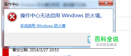 1 操作中心无法启用windos防火墙,并显示手动启用window防火墙