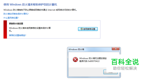 2或者提示window防火墙无法更改某些设置,并提示错误代码 0x80070422呢?