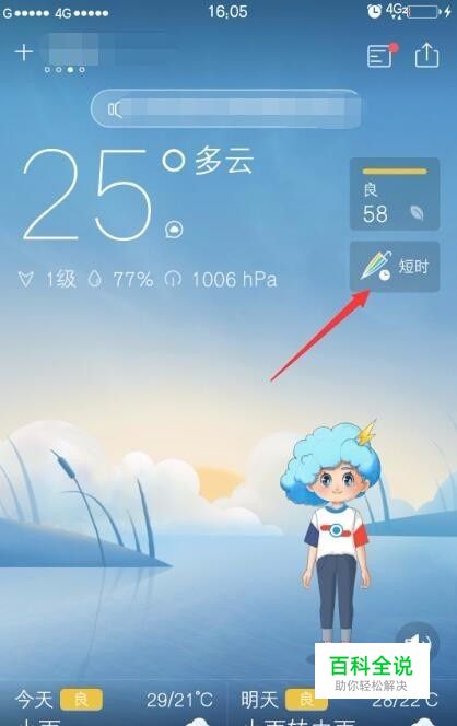 进入后通过设置自己的位置来查看当前天气,点击短时按钮可查看未来2小时天气变化,如图。