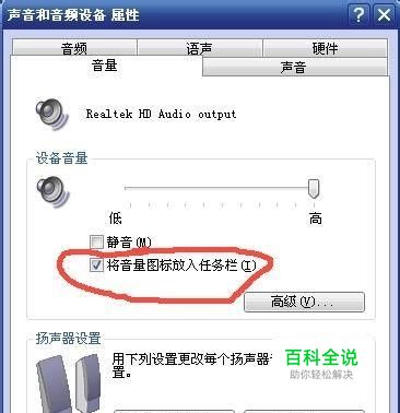 可能是系统设置屏蔽了声音图标。控制面板--声音和音频设备--将音量图标放入任务栏
