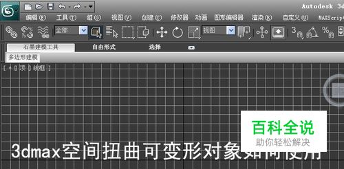 打开3d max软件(这里用的3d max2010版的软件)。可看到四个视图窗口,在窗口的右边,鼠标左键单击面板的【空间扭曲】按钮,选择【可变形对象】,如下图所示。