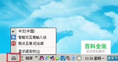 单击下任务栏的“语言”图标,如图所示,这里显示的是电脑上可以正常使用的输入法。