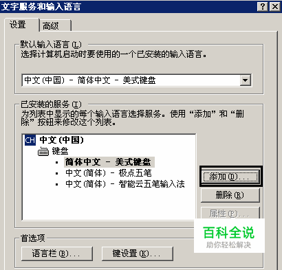 在打开的“文字服务和输入语言”框中,选择右侧的“添加”选项。