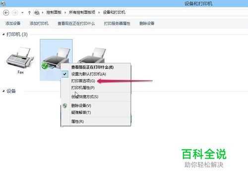 首先检查打印机设置 进入控制面版设备和打印机 默认打印机右键打印首选项