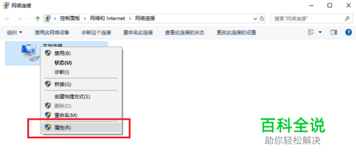 第二步进去网络连接界面之后,鼠标右键连接,选择属性,如下图所示: