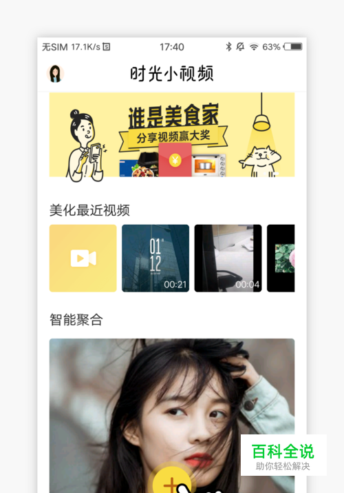 首先,打开时光小视频,点击“+”选择你的素材