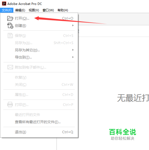 Acrobat DC是Adobe与2015年推出的一款文件处理软件。最大亮点在于可将纸质图片、文字迅速转化成PDF或文档格式,比如人们通过手机拍照,可让纸质版文字转化成电子版,用户可直接对文档进行修改。另外,通过移动端和PC端,Acrobat DC可让Excel、Word和PDF之间的相互转化更为便利。 启动软件,并点击菜单栏“文件”-----“打开” 选中文件打开文件