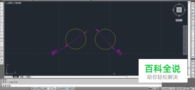 打开AutoCAD2012新建一个图纸,运用命令“C+空格”画出来两个相距一段距离的圆形尺寸暂时设置为20mm。