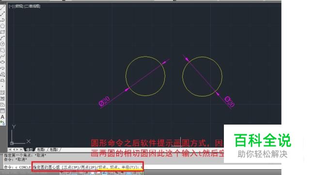 画相切圆的命令仍然是圆命令。下面在绘图区域或者命令区域输入“C+空格”