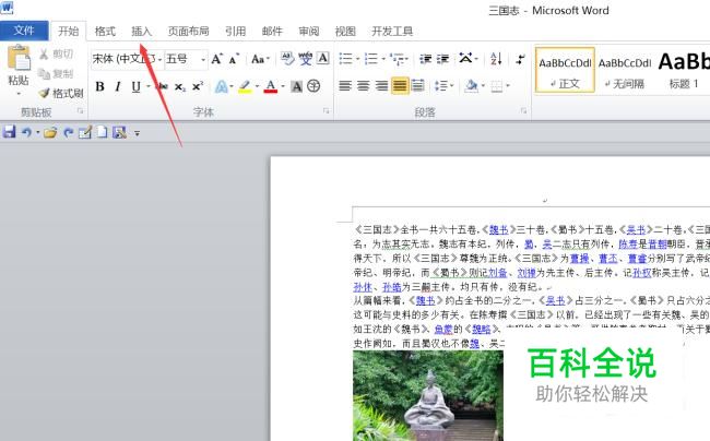 打开word文档,点击工具菜单栏的插入。