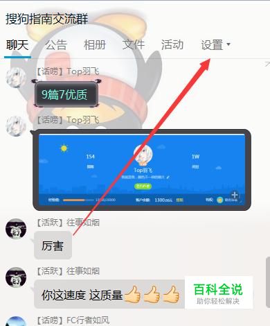 打开电脑上面的QQ客户端。然后点击打开群聊天界面。在聊天界面点击上面的设置进入设置页面。