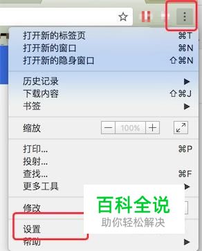 在弹出的下拉菜单里,选择点击‘设置’