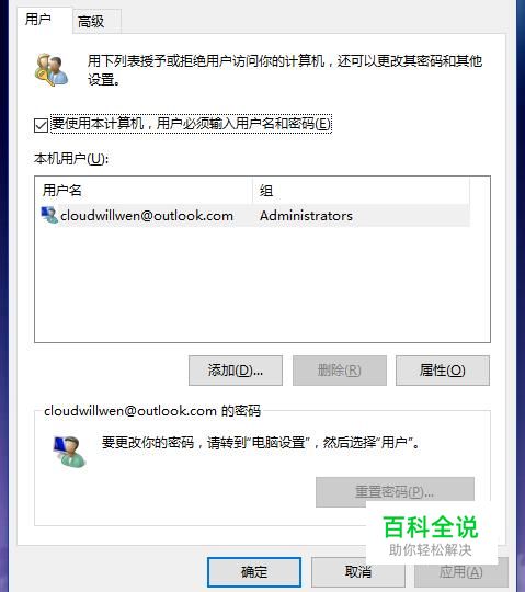 点击后,在用户帐户对话框里可以看到“要使用本计算机,用户必须输入用户名和密码”被勾选中了。