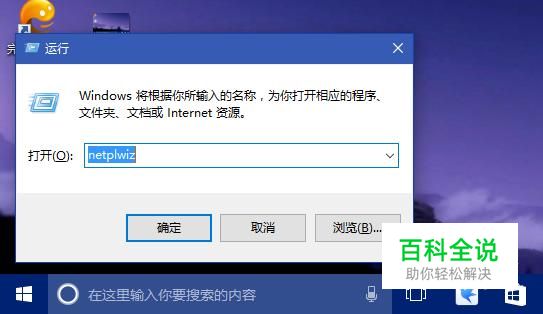 在对话框中输入:netplwiz,然后点击确定,如下图所示。