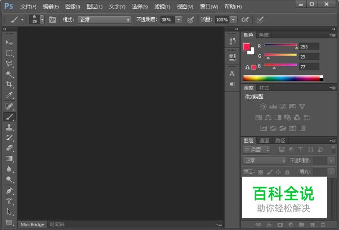 在桌面上找到ps的快捷图标,双击打开ps这款软件,进入ps的操作界面,如图所示: