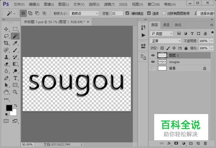 选择魔术棒工具,属性如图;然后,选出灰色区域。