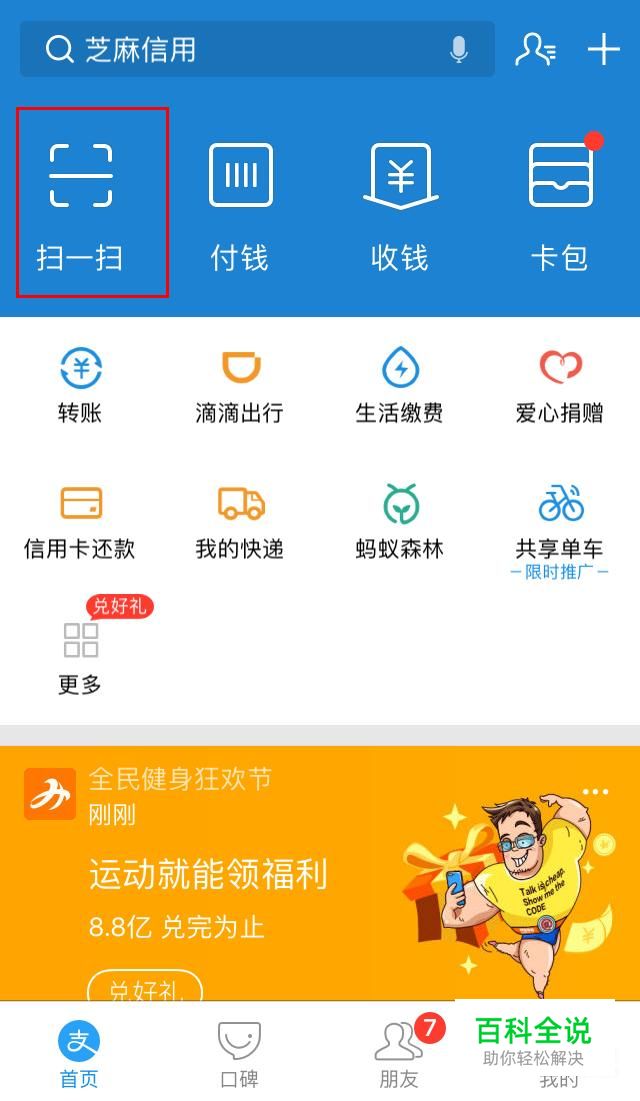 首选打开手机支付宝,点击扫一扫。