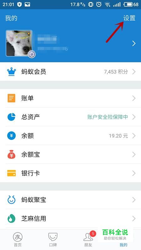进入个人界面,选择“设置”