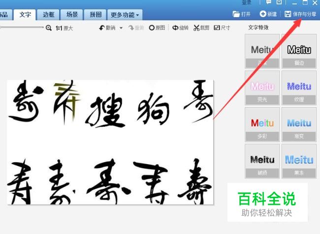 如果想要保存的话点击右上角的保存与分享进入保存页面。