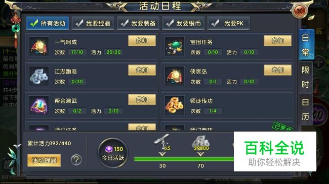 在卧虎藏龙2中,每天能够参加日常活动获得藏宝图,获取宝图后挖宝能够得到不同品质的物品,下面教你如何参加日常活动获得藏宝图。