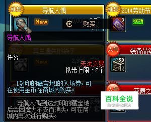 玩DNF时我们总会发现我们的背包里多了一个像小外星人一样的道具——导航人偶,它是【封印的藏宝地】的入场券,而我们怎么得到它呢?小编来教你!