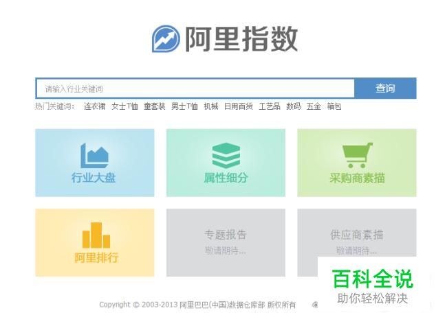 首先我们先在搜素引擎上面搜索阿里指数,然后我们进入他的官网页面。