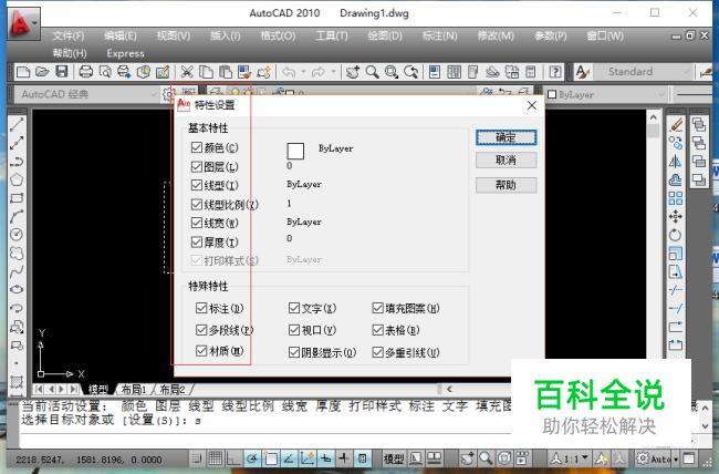 如果要控制传递某些特性,可以在选择目标对象或设置"s",输入s弹出特性对话框。