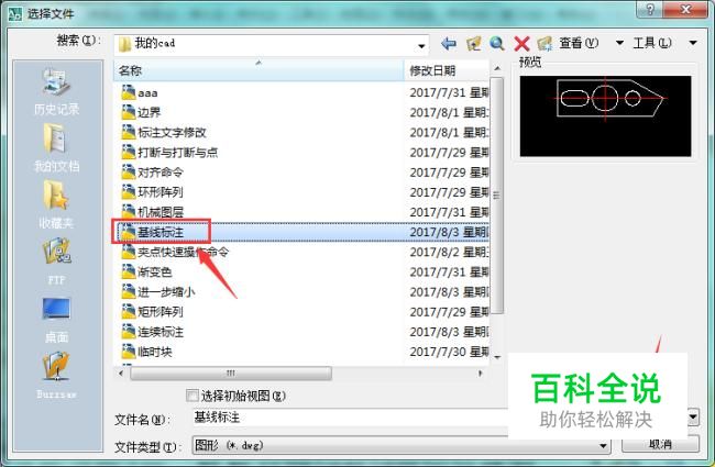 打开图形后,接下来进行图形的“基线标注”。在此之前,先在图层管理器中选择我们的尺寸标注图层“细实线”,如图所示: