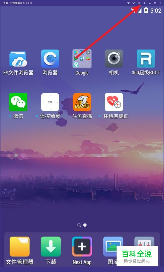打开安卓模拟器,点击右上角的齿轮进行设置。