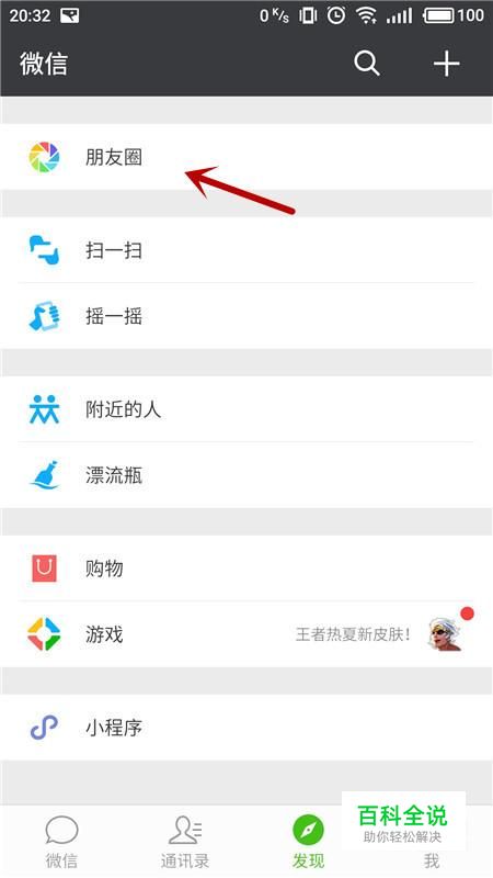 进入微信界面,选择“发现”