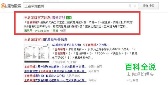 首先用搜狗搜索“王者荣耀官网”,并进入官网。