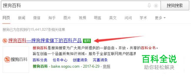 在搜狗搜索中输入“搜狗百科”,如图所示