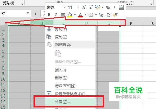 找到列宽,点击列宽,然后输入想要的列宽数字。