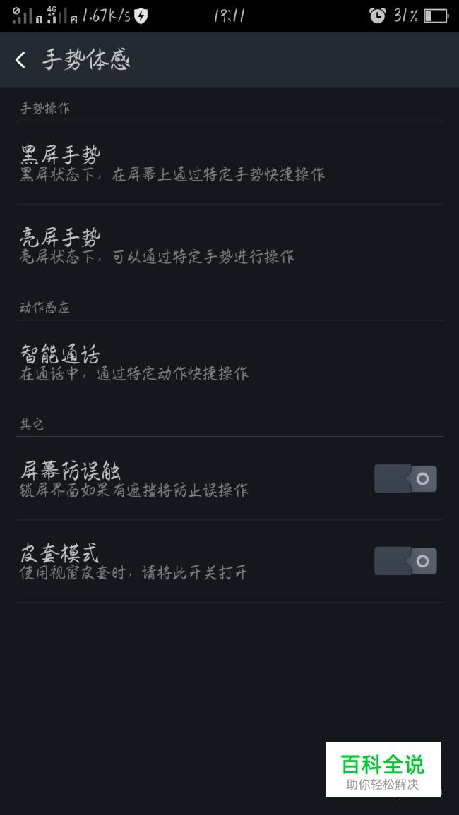 oppo手机:打开“设置”,打开“常规”中的“手势体感”选项,,关闭“屏幕防误触”选项。