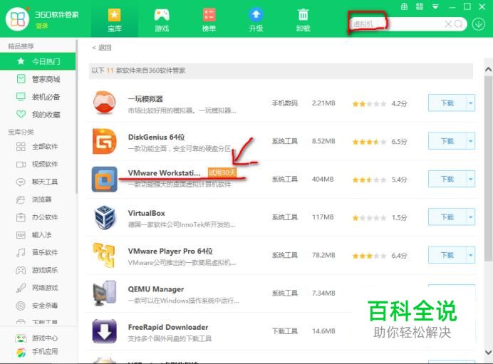 要装虚拟机,首先要下载,可以到360管家里下载,或者直接搜索下载,下载路径自己设置,你自己能快速找到就行了