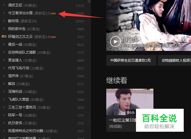 选择一个自己想要下载的视频,以电视剧“守卫者浮出水面”为例,如图所示