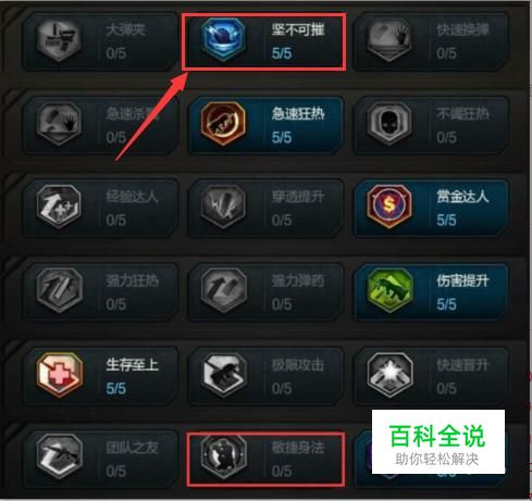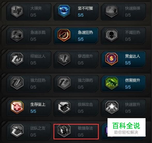 第六层个人建议“天生我才”,每隔一段时间可以随机获取技能,如果获得爆头技能,配合狂热技能可以获取很大的输出。“敏捷身法”对于狙击枪(战意星河,原子力量,地狱修罗)有很大的作用,可以提升攻击和移动速度,如图所欧式
