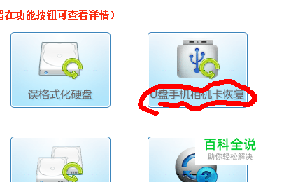 双击刚刚安装的软件,进入软件的主功能区。点击“U盘手机相机卡恢复”。这个功能可以恢复照片,如下图所示: