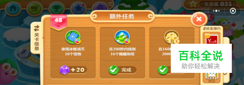 本关的具体任务如下图所示,其中1项是要求用冰锥灭掉一定数量的怪物,另外两项都是时间任务。