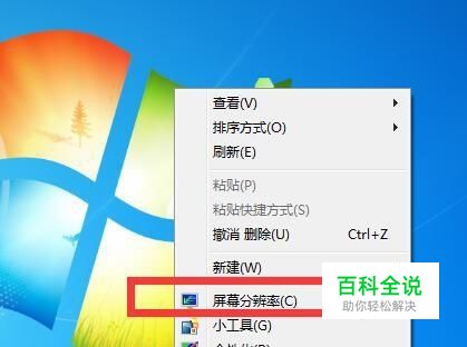 1、在桌面任意空白处右击,选择屏幕分辨率