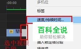 3、选中放慢片段,右击鼠标,选择“速度/持续时间”