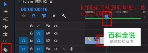2、选择出要放慢的视频部分,利用“剃刀工具(c)”或快捷方式ctrl+k裁剪出来