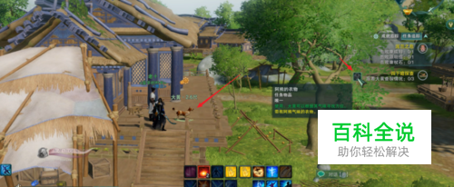 继续在侠客岛升级。跟随前面的任务指示(左边箭头所指)去找交任务NPC。